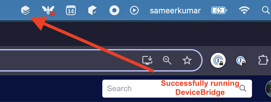 The EasyPost logo would show up in the Menu Bar once the DeviceBridge is successfully running: